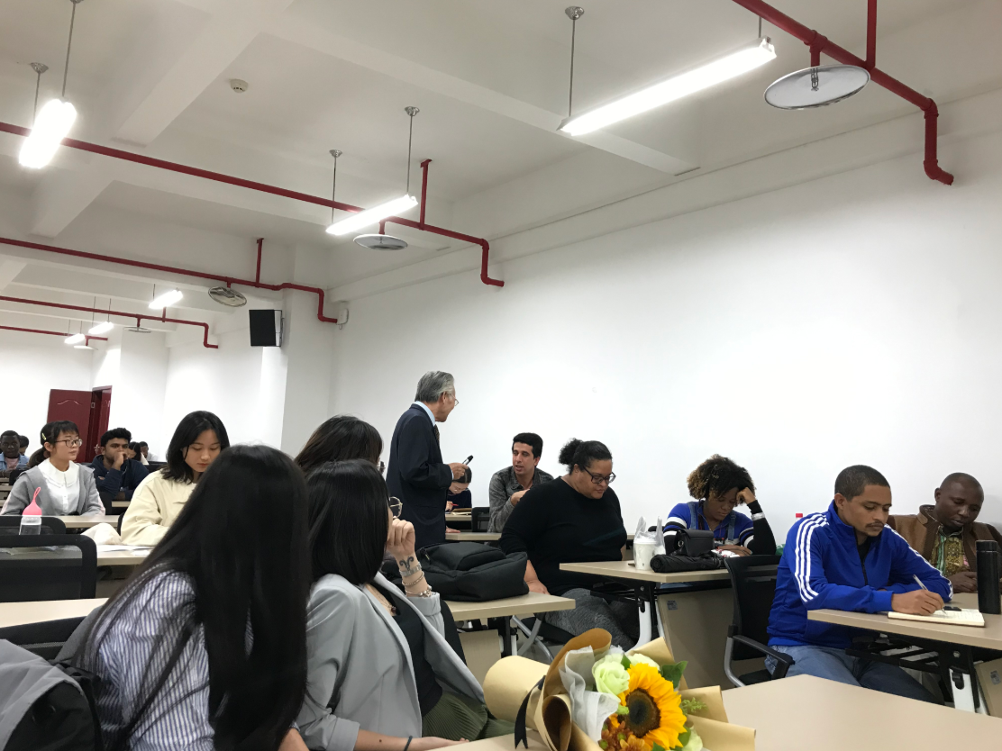 下午3点,活动伊始,由罗超平老师作为本次讲座主持人,用中英双语向师生们介绍了陈德明副董事长丰富的人生履历。其后,在全场热烈的掌声下,陈副董事长来到讲台中央,讲座正式开始。