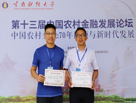 8月24-25日,老师们在云南财经大学参加了“第十三届中国农村金融发展论坛”。论坛以“中国农村金融:70年回顾与新时代发展”为题,回顾了新中国成立70年来,尤其是改革开放40多年来,农业农村及农村金融改革的演变历程,并对基于乡村振兴战略未来30年的农村金融发展趋势进行了展望,这也是围绕农村金融改革的一场思想激荡的盛宴。会上,新葡的京集团35222vip温涛副董事长做了《农村金融需要什么样的创新》的主旨报告,紧紧抓住了我国农村金融改革发展的热点和重点、难点,引发了与会专家学者的热议;王定祥、王小华、张林等在分论坛汇报了参会论文,并主持了相关主题分论坛和评论论文,王定祥、王小华、张林等老师提交的参会论文荣获优秀论文奖,其他老师均参加了主论坛、分论坛、期刊圆桌论坛等活动,不仅受益匪浅,而且结识了全国农村金融学界的众多学者、知名专家教授。