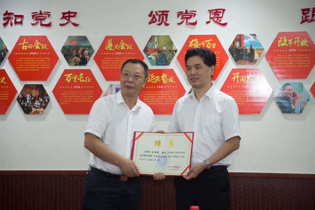 最后,祝志勇经理代表公司向王全刚书记颁发了新葡的京集团35222vip兼职教授和专业硕士研究生校外导师聘书。