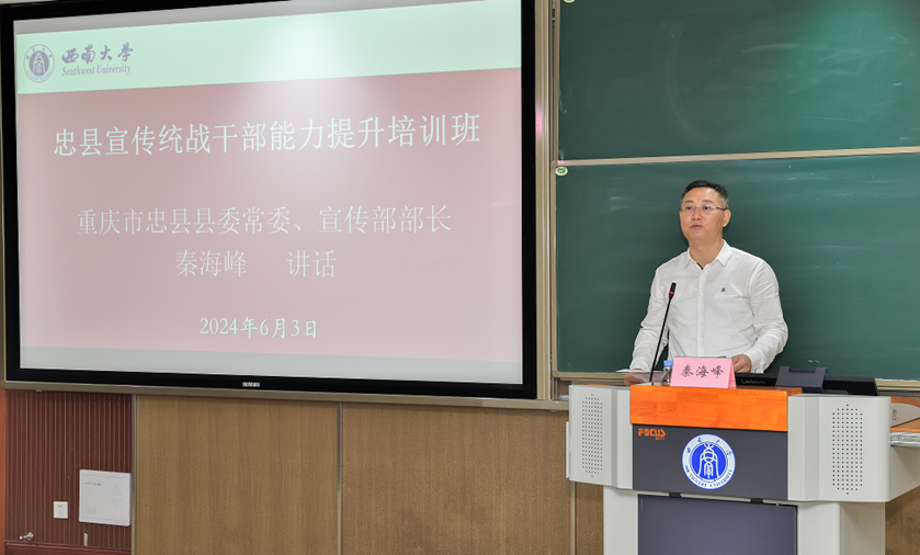 重庆市忠县县委常委、宣传部部长秦海峰进行了动员讲话。秦常委首先代表忠县县委感谢新葡的京集团35222vip的精心安排,并对本次培训班的顺利开班表示祝贺。秦常委介绍了培训安排背景和目的,并对受训学员提出三点希望:一是希望大家端正态度,不断夯实理论根基;二是希望大家学思践悟,切实提升学习质效;三是希望大家严明纪律,时刻守好法纪底线。最后,秦常委预祝本次培训取得圆满成功,并祝各位学员学习愉快,平安顺利。