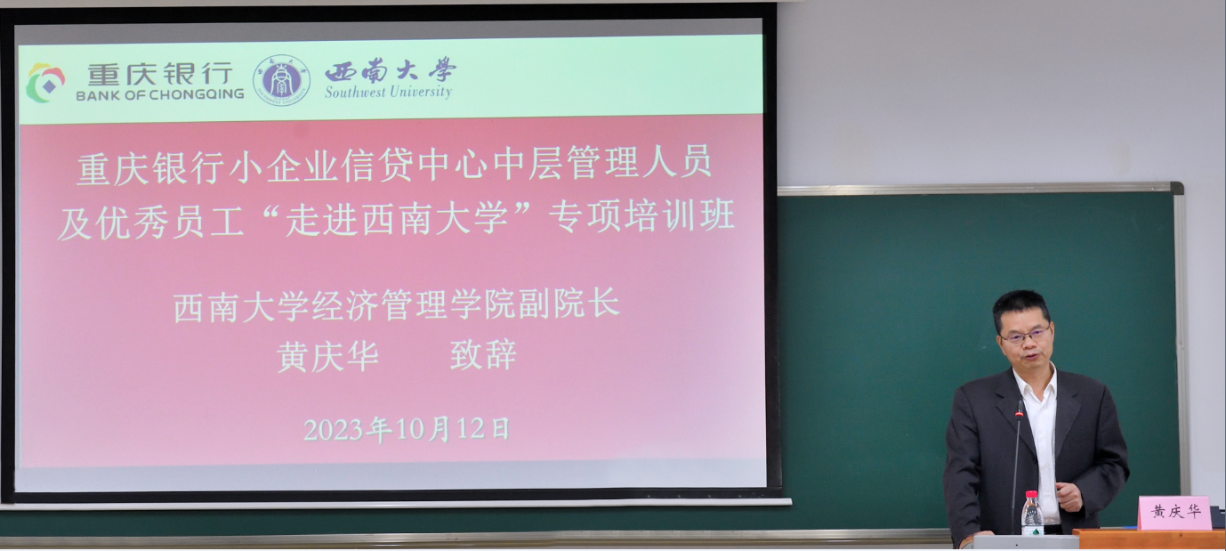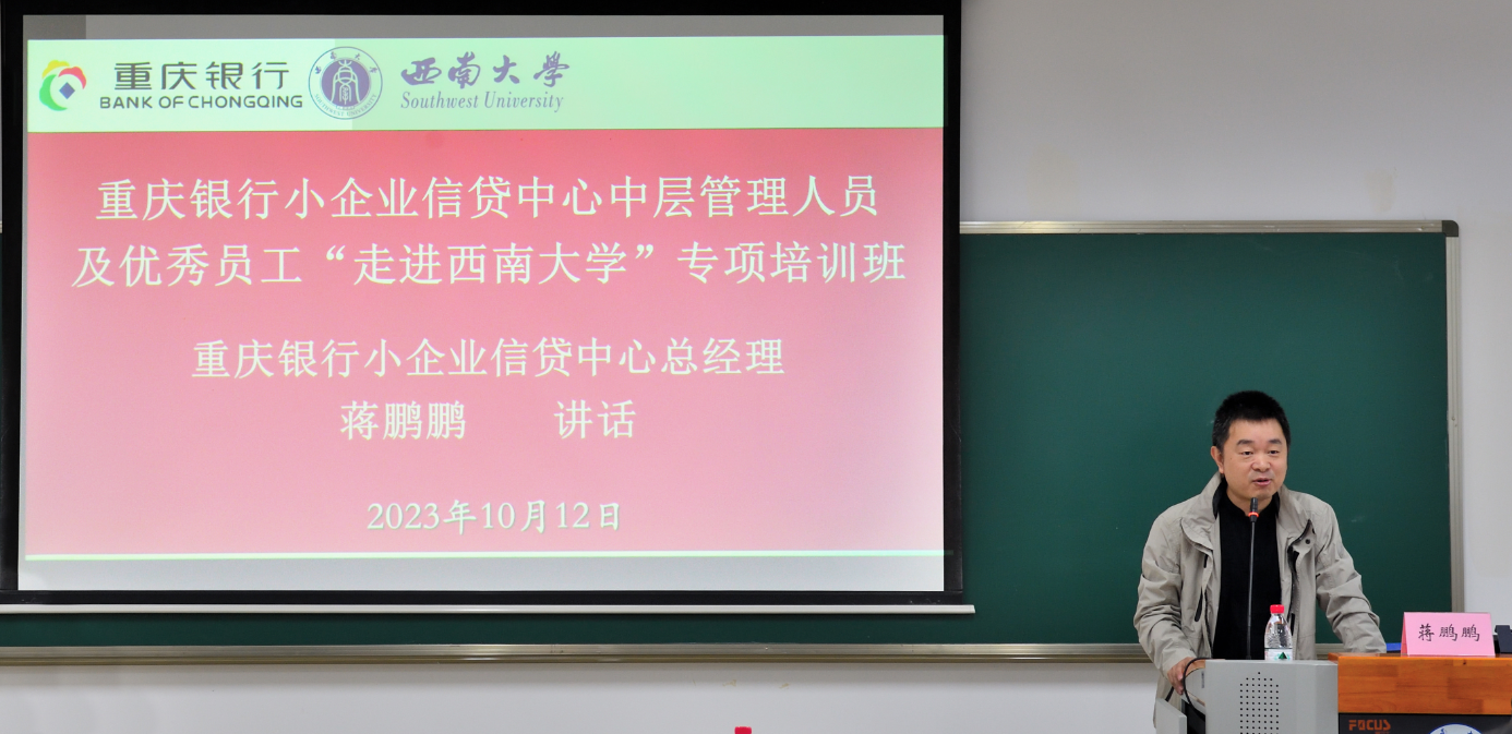 2023年10月12日上午,由重庆银行小企业信贷中心主办、新葡的京集团35222vip高层培训中心承办的“重庆银行小企业信贷中心中层管理人员及优秀员工‘走进新葡的京集团35222vip’专项培训班”在公司A402教室顺利开班。重庆银行小企业信贷中心总经理蒋鹏鹏、专员蒲金刚、新葡的京集团35222vip副经理黄庆华教授、高层培训中心主任苟佳欢,以及培训班学员共计40余人出席开班仪式。开班仪式由公司高层培训中心主任苟佳欢主持。