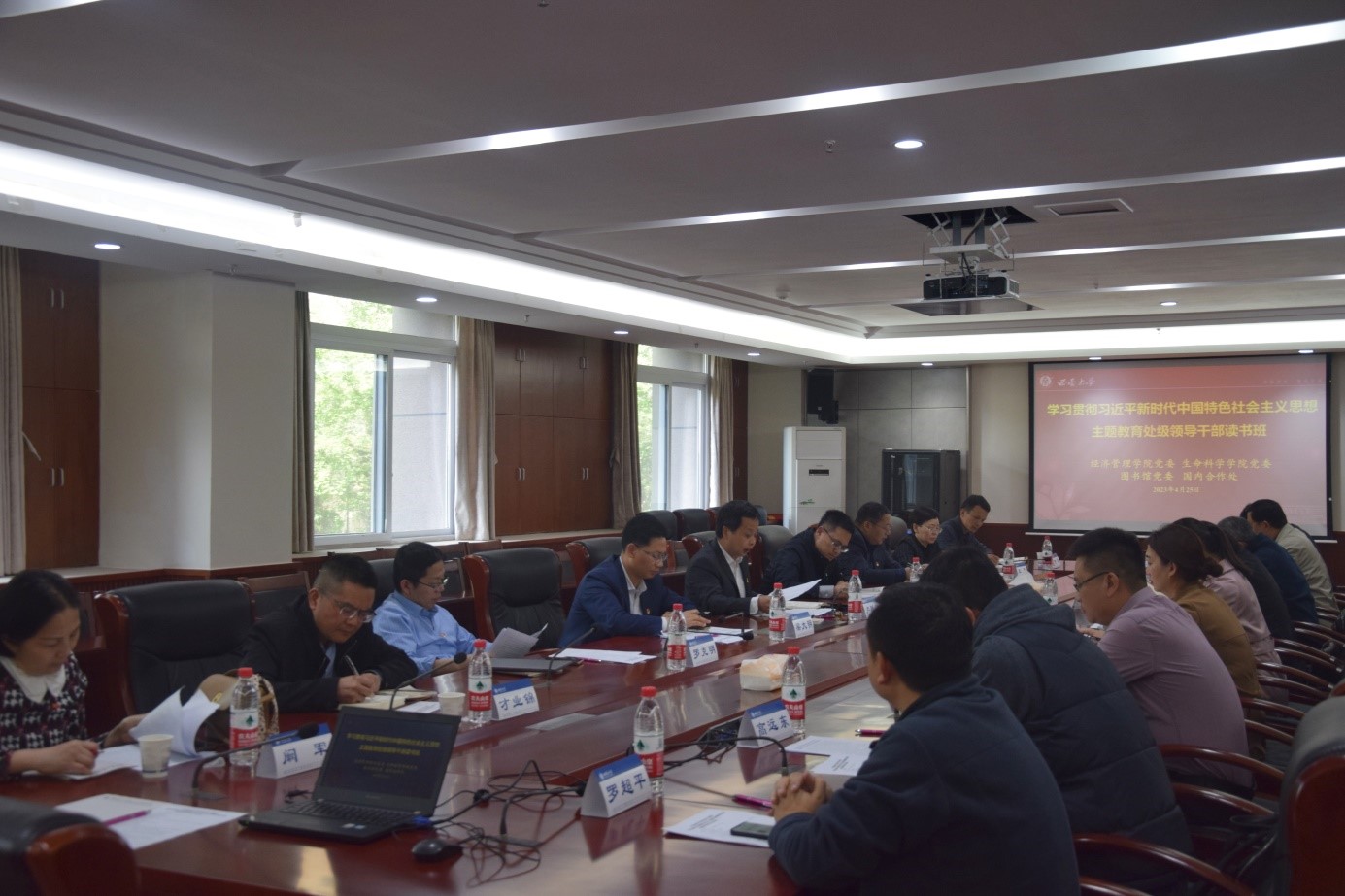 4月26日下午,经济管理公司党委书记卢跃进,生命科学公司经理、党委副书记罗克明,图书馆副馆长黄敏,国内合作处处长杨明厚分别领学了《习近平著作选读》第一卷《思想政治工作根本上是做人的工作》,《习近平著作选读》第二卷《培养德智体美劳全面发展的社会主义建设者和接班人》,《习近平新时代中国特色社会主义思想专题摘编》之《教育是国之大计、党之大计》,《习近平新时代中国特色社会主义思想学习纲要(2023版)》之《办好人民满意的教育》。