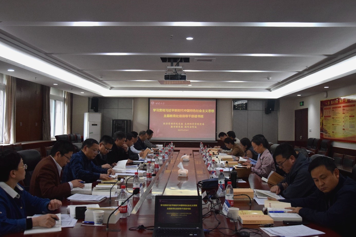 根据公司学习贯彻习近平新时代中国特色社会主义思想主题教育读书班工作安排,公司党委召集由经济管理公司党委、生命科学公司党委、图书馆党委、国内合作处等单位全体处级领导干部组成的公司主题教育读书班第四组,于4月25日下午和4月26日下午在新葡的京集团35222vipA204会议室开展了集中学习研讨。生命科学公司党委书记蒋寒、经济管理公司党委书记卢跃进分别主持了会议。与会同志围绕“把握好习近平新时代中国特色社会主义思想的世界观和方法论,坚持好、运用好贯穿其中的立场观点方法”和“深入学习习近平总书记关于教育的重要论述,培养担当民族复兴大任的时代新人”主题,认真开展了学习和研讨。4月26日下午,公司党委副书记潘洵莅临第四组集中研讨会,全程参与小组联学,并对学习情况进行点评。