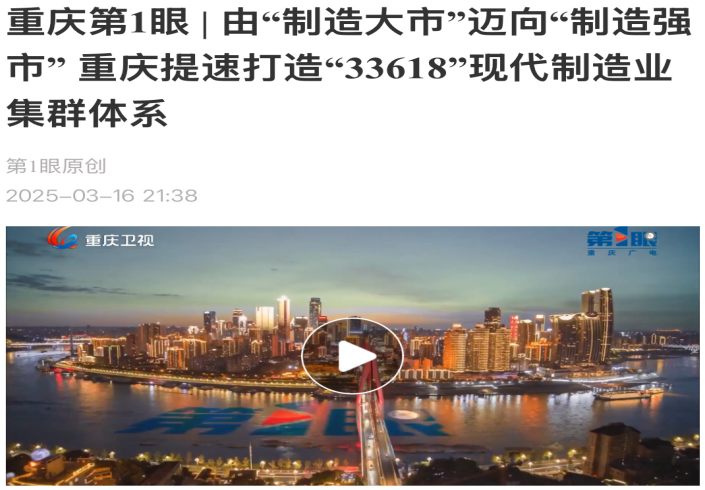 重庆电视台《重庆第1眼》2025年3月16日播出题为《由“制造大市”迈向“制造强市”重庆提速打造“33618”现代制造业集群体系》的新闻分析。新葡的京集团35222vip副经理黄庆华教授接受了记者的采访。