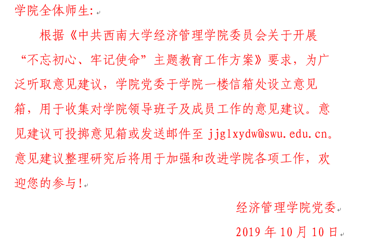 根据公司《关于开展“不忘初心、牢记使命”主题教育工作方案》有关要求和公司工作实际,9月23日上午,经济管理公司党委“不忘初心、牢记使命”主题教育工作全面启动。经济管理公司党委将陆续...