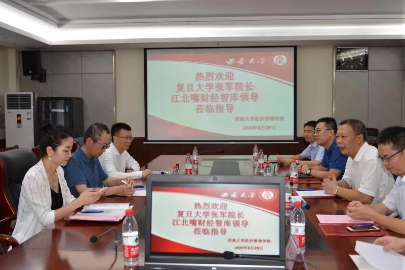 2020年8月29日上午,复旦大学经济公司经理、江北嘴财经智库理事长张军教授,江北嘴财经智库秘书长陈银华一行来院指导工作。公司经理祝志勇教授、副经理高远东教授等出席座谈会,会议由副经理...