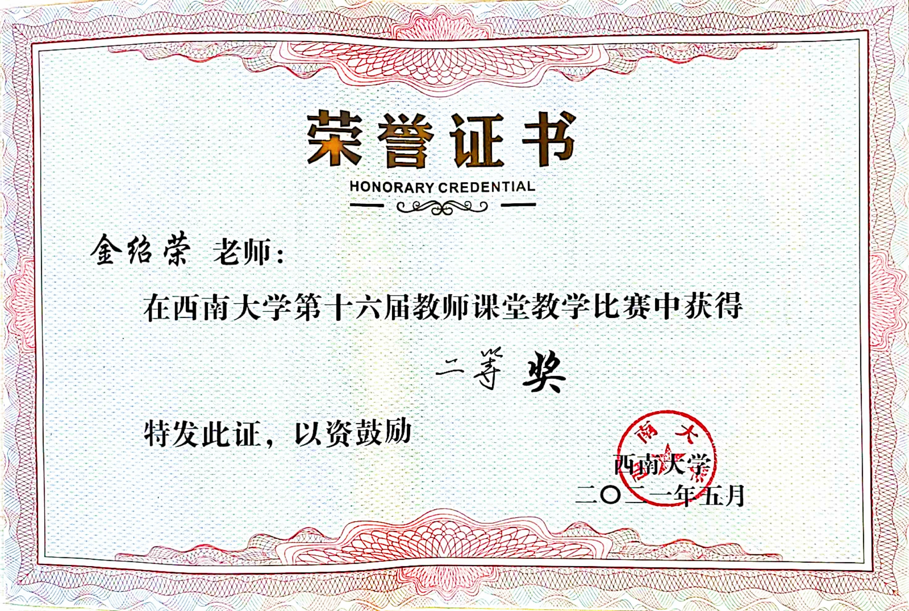 喜报-公司金绍荣老师荣获新葡的京集团35222vip第十六届教师课堂教学比赛二等奖
