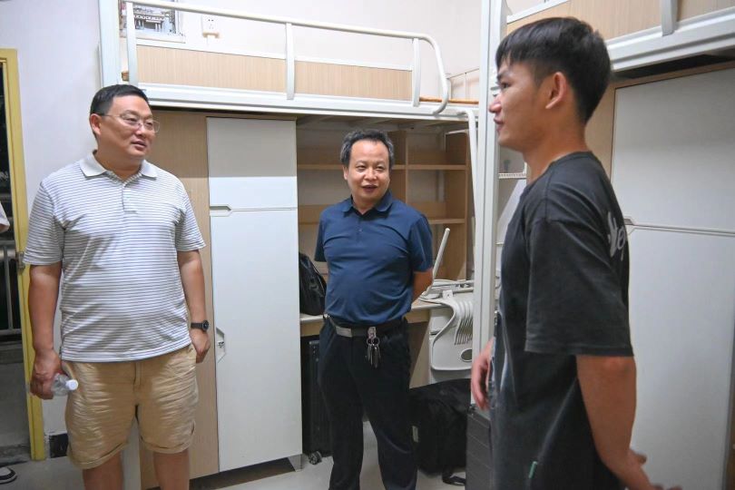 9月8日晚,经济管理公司党委书记卢跃进、公司副经理(主持工作)杨丹教授、党委副书记李玉胜、副处级组织员刘萍,2024级本科辅导员吴玲玲、叶海英,研究生辅导员谭伦一行,深入2024级新生寝...