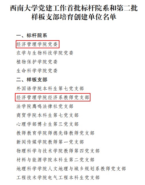 近日,公司公布了首批标杆院系和第二批样板支部培育创建单位名单、第二批研究生样板党支部培育创建单位名单。公司党委成功入选公司首批“标杆院系”培育创建单位,经济系教师党支部入选公司...