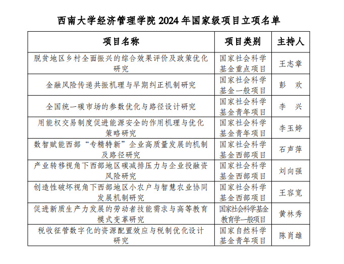 近日,国家自然科学基金委员会和全国哲学社会科学办公室相继公布2024年国家自然科学基金年度项目、全国教育科学规划项目和国家社会科学基金年度项目立项名单。公司分别获得国家社会科学基金...